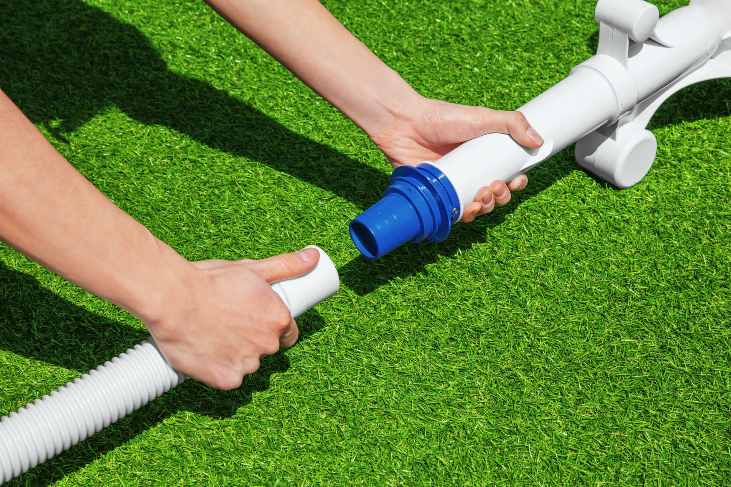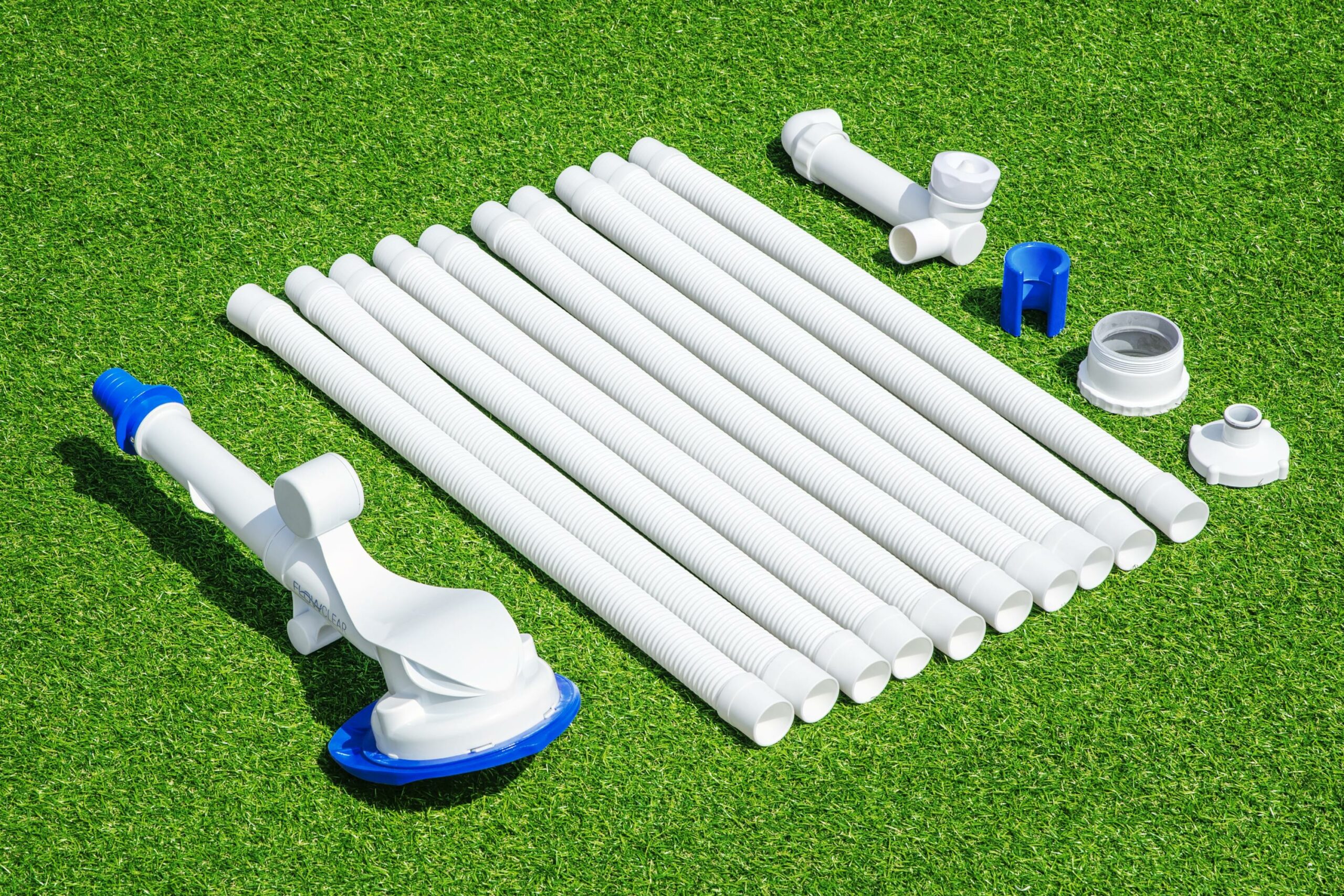 Bassengstøvsugeren er meget enkel å bruke. For å starte systemet, kobler du det enkelt og greit til filterpumpen i bassenget. Trykkregulatoren hjelper deg med å kontrollere strømmen av innført vann, slik at du kan bruke det selv om du har en kraftig filterpumpe. Den 7,5 meter stabile slangen gjør at du kan nå selv de ytterste punktene i bassenget ditt. Kontaktene som følger med i pakken gjør støvsugeren kompatibel med alle bassenger i Bestway-samlingen, selv med bassenger med myk struktur.