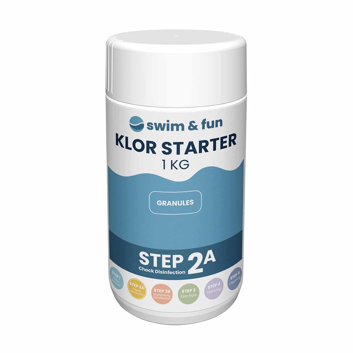 Klor Starter Granulat 1KG – for rask og effektiv desinfisering av bassengvannet.