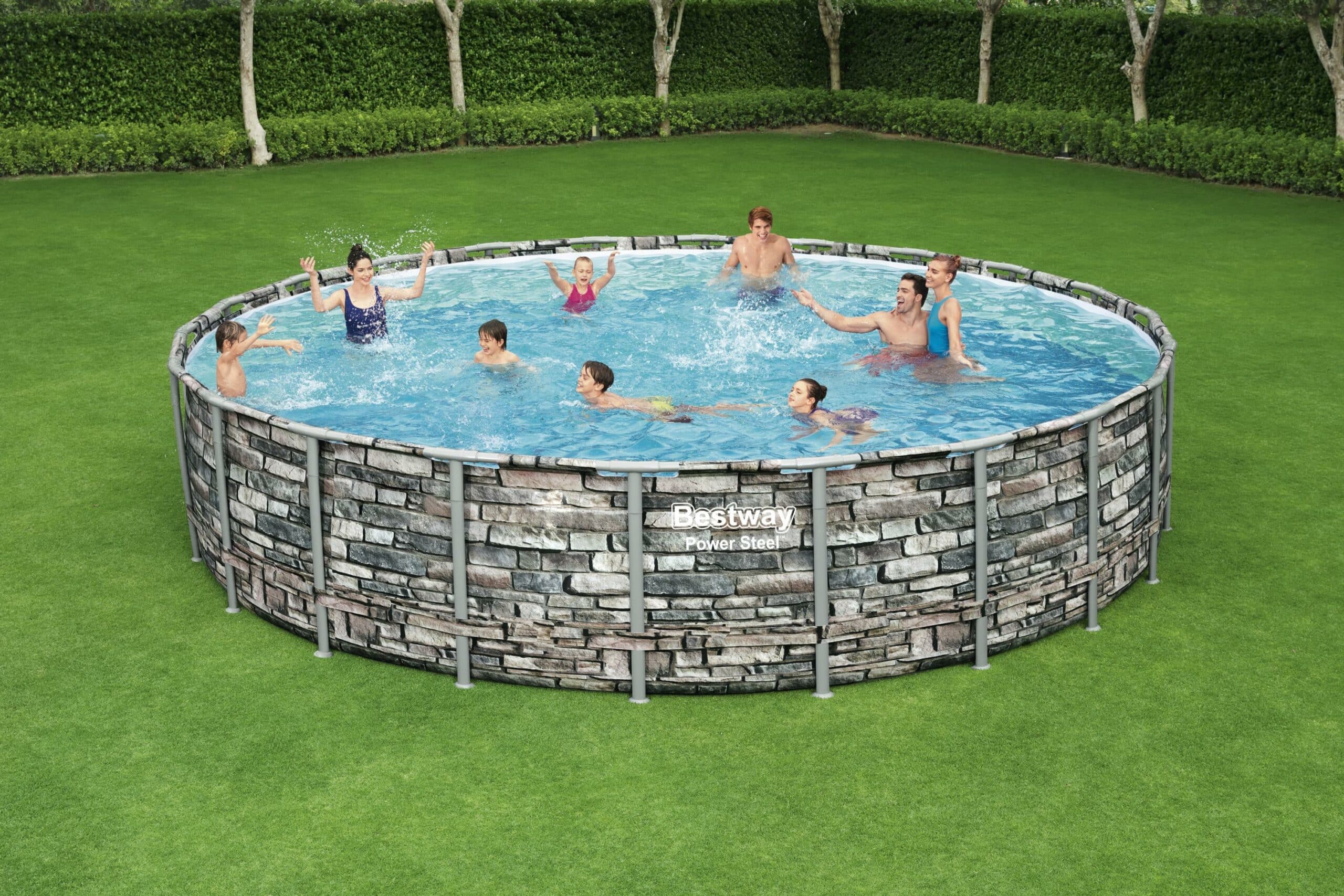 Rundt Power Steel™ A3 bassengsett, et klassisk og stilrent basseng som sklir perfekt inn i enhver hage! Den runde formen gjør det ypperlig for å samle gjengen til en forfriskende drink og lene seg behagelig langs bassengkanten mens praten holdes gående. Bassenget kommer som et komplett sett og har sin overlegne styrke i en solid og rustfri konstruksjon. Det er superenkelt å montere, og meget plasseffektivt til lagring når badesesongen går mot slutten.
