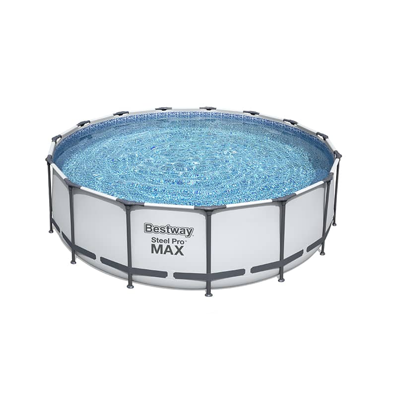 Rundt Steel Pro MAX™ Q2 bassengsett. Med Bestway’s runde Steel Pro MAX™ basseng får du alt du trenger til en avslappende sommer. Det moderne runde designet får bassenget til å gli perfekt inn i enhver hage. Her kan man samle venner og familie til en nedkjølende dukkert. Plasser bassenget på en jevn overflate uten skarpe steiner og kanter, monter opp og fyll det med vann. Den stabile konstruksjonen gjør bassenget ekstra stødig, og passer dermed også perfekt for familier med barn.