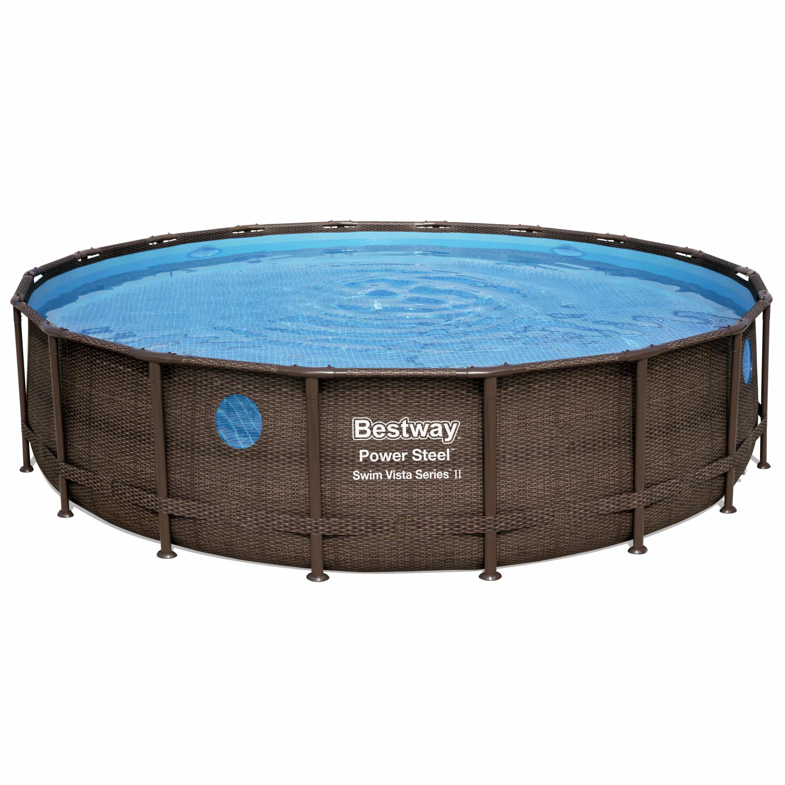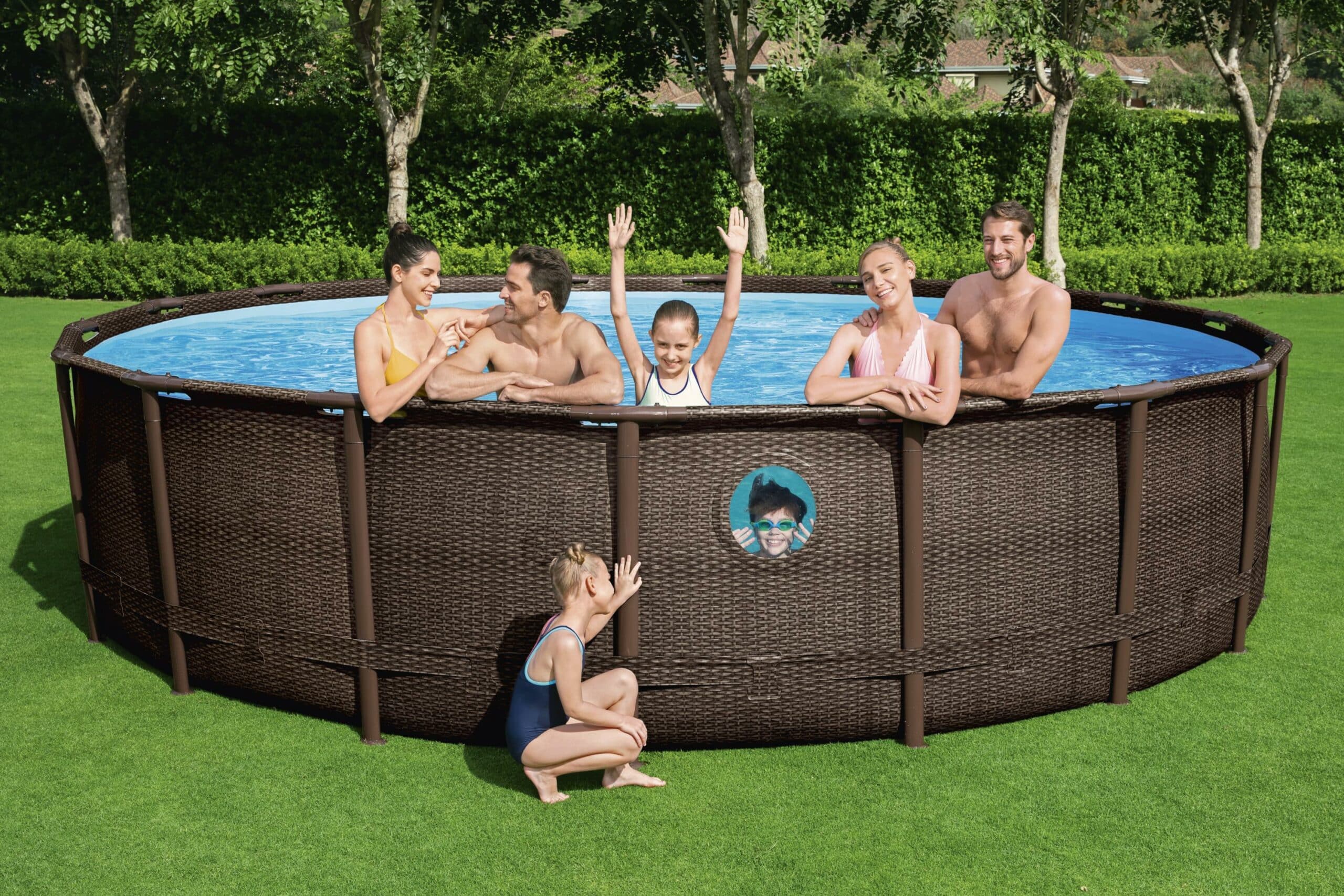 Rundt Swim Vista™ W2 bassengsett, bassenget for deg som elsker å bade! I tillegg til et hjemmekoselig design, er Swim Vista-serien konstruert med to undervannsvinduer så du kan ta kule bilder og ha det moro med barna. Bassenget glir elegant inn i enhver hage! Den runde formen gjør det ypperlig for avslapning og vannaktiviteter, her er det plass til hele familien eller vennegjengen. Bassenget monteres like enkelt som det tas ned, og er meget plasseffektivt til lagring når badesesongen går mot slutten.