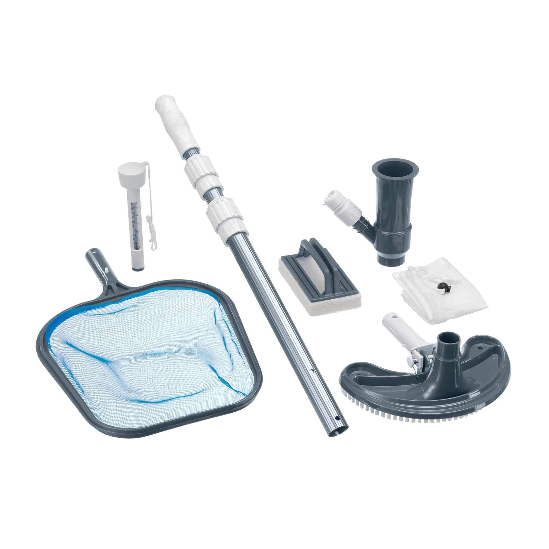 Tilbehørssett til Basseng – alt du trenger av basistilbehør ved siden av kjemikaliene for å holde hagebassenget i god stand. Gjør rensejobben ti ganger så enkelt!